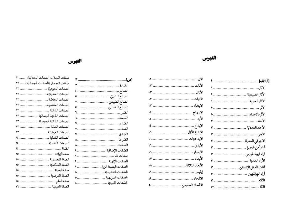 يخصّص المؤلف عدة صفحات لتحليل الصفات الإلهية: